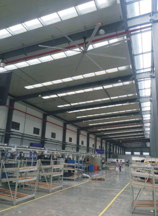 我公司生產(chǎn)的大型工業(yè)吊扇直接懸掛在廠房屋梁下,風(fēng)力柔和,能加快車(chē)間空氣流通,有效降低車(chē)間內(nèi)溫度,改善車(chē)間空氣環(huán)境質(zhì)量,有利于員工的身體健康。